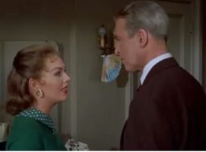 - Hitchcock (Vértigo): Scottie (James Stewart) es un detective vulnerable, atrapado por su fobia a las alturas y por la fascinación con Madeleine/Judy (Kim Novak). La dualidad femenina es más explícita: una mujer que finge ser otra, y luego es moldeada por el protagonista.
